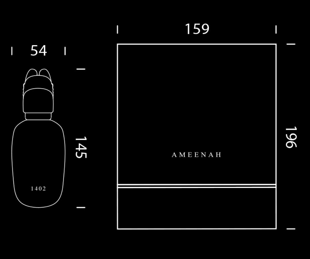 With its intense black background accentuated by prestigious golden highlights, Ameenah’s packaging represents the impeccable craftsmanship and luxurious detail of the products inside.